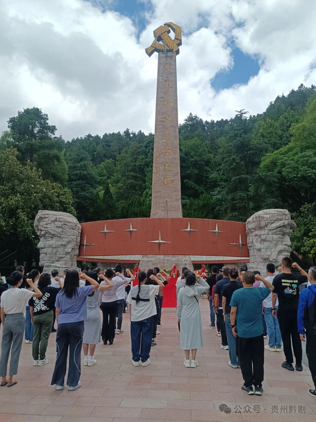 全体人员来到遵义红军山烈士陵园,革命烈士纪念碑巍然矗立,全体党员干部怀着崇敬心情向烈士敬献花篮,肃穆默哀,深切缅怀革命先烈。大家缓步绕行纪念碑,瞻仰红军英烈墙、红军坟,聆听红军烈士的英雄事迹,感受他们用生命铸就的忠诚与信仰。