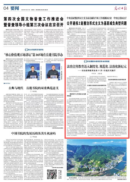 法治宣传教育是全面依法治国的长期基础性工作。今年是全民普法40周年,也是“八五”普法收官之年。近日,全国人大常委会表决通过了《中华人民共和国法治宣传教育法》,该法自11月1日起施行。在10月30日举行的国新办新闻发布会上,全国人大常委会法工委副主任黄薇表示,法治宣传教育法的通过,标志着我国的法治宣传教育事业全面迈入了制度化、规范化、法治化的新纪元,具有里程碑式的重要意义。