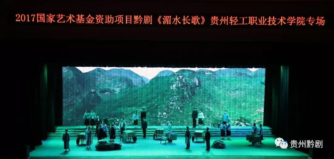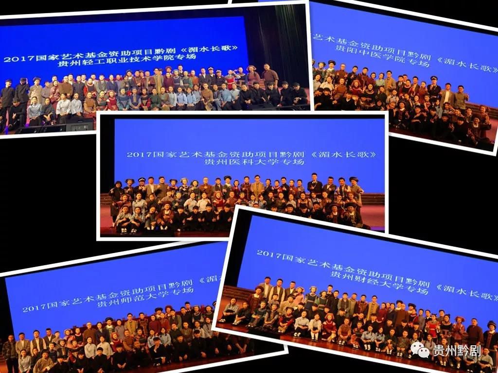 2017年度国家艺术基金项目大型黔剧《湄水长歌》走进大学城巡演,11月18日——24日每天演出2场,共计演出14场,分别为贵州轻工职业技术学院、贵阳中医学院、贵州医科大学、贵州师范大学、贵州财经大学5所高校进行专场演出,涉及大学生观众上万人次,场场爆满,座无虚席。首场演出于18日贵州轻工职业技术学院专场演出中拉开帷幕。