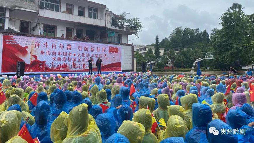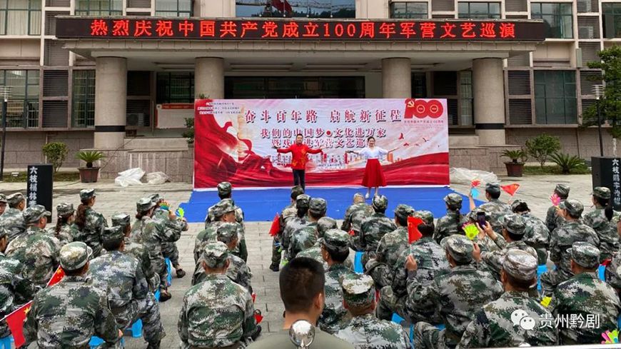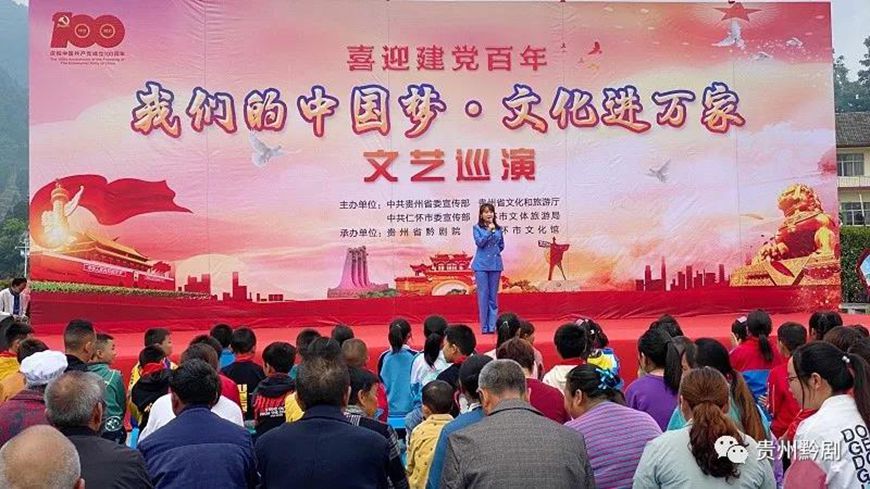 2021年,在庆祝中国共产党成立100周年之际,省黔剧院结合党史学习主题要求,精心创排节目,发挥自身优势,宣传党的好声音,为群众办实事,不断满足基层人民群众的精神文化需求,历时5个多月,为贵州基层老百姓、学生、武警官兵等送上了丰富的文艺大餐。由中共贵州省委宣传部、贵州省文化和旅游厅主办,贵州省黔剧院承办的--喜迎建党百年“我们的中国梦 文化进万家”百场文艺巡演终于完整收官。