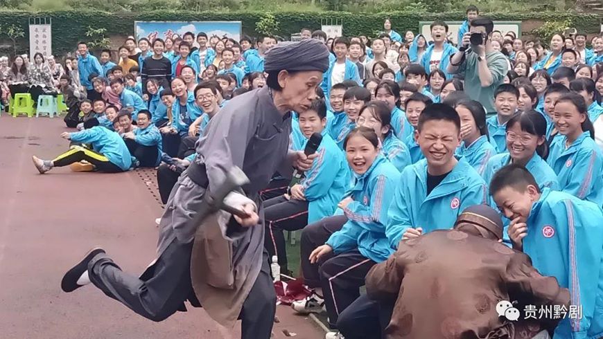 黔剧院演出小分队每到之处,当地百姓及学生看完后都久久不愿离去,纷纷来到舞台前,要求与演员们合影并要求签名,或签在本子上,或签在手上,还有的签在衣服上,小朋友们更是追着我们的车子一路挥手再见,就是这样的观众,烈日下,他们和演员一起晒,大雨中,他们陪着演员一起淋,在赤水最后一场演出即将结束之际,赤水文化馆馆长柳琴特地上场演唱一一首《云上赤水》,最后一句:“舍不得...希望黔剧院的老师们再来赤水....”感动演员的同时也感动了现场的每一位观众...虽说我们演出的时间不长,但却和当地文化馆结下了深深地友谊...